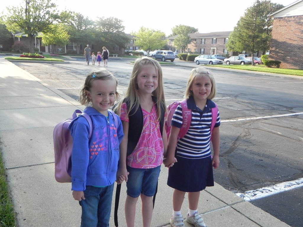 I haven't downloaded the photos of Lydia from the first day of school yet, but a friend sent me this photo of her with her best friends walking to the bus stop. Such cute girls!! Lydia is really enjoying school. She likes having so many friends to ride the bus with and she has a little boy from church in her school class. She LOVES packing a lunch- which means the extravagance of a juice box and go-gurt.